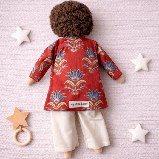 What a beautiful creation, my son will love to see curls like his and his mamas, the kurta he wore for a wedding all on a toy. It's gorgeous